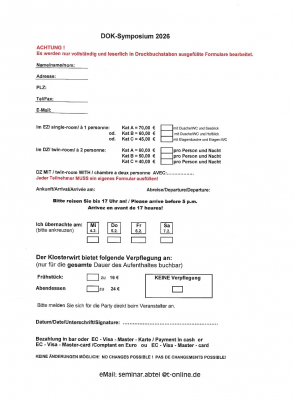 Anmeldung, Zimmerreservierung Kloster